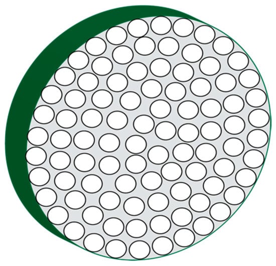Cartoon representation of a high-magnification transverse cross-section through a developing sea urchin spicule, revealing radial, coaxially arranged calcium carbonate mineral nanoparticles. Adapted from references [21,27].
