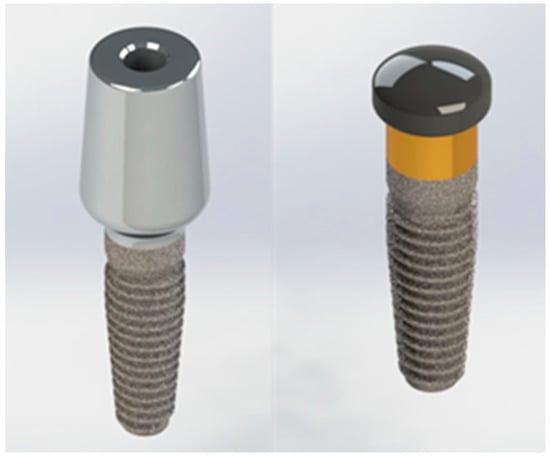 A comparative analysis was performed to complete the systems, using a type of implant and various “pillars” and “abutments” connected by metric threading (Figure 1). The dimensions of the system components were not provided; therefore, it was necessary to go through a “reverse engineering” process. It was necessary to refer to prosthesis catalogues to acquire the initial measures. Furthermore, due to the lack of many measures, photos were used to derive them. The reverse engineering operation inevitably introduced approximations. Moreover, we used the obtained dimensions to create the geometry of the three-dimensional models in the SolidWork® program. High importance was given to the materials (titanium alloy and bone) and to the parameters of the simulations, such as the definition of the contact surfaces, the mesh, and the loading conditions and the constraints. The results of the tests were available in the form of graphic simulations and data, which were compared to understand the optimal configuration between the systems analyzed. Finally, the Von Mises stress solutions were used and applied to the data.