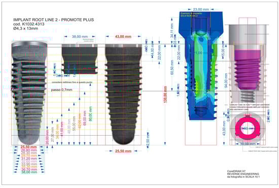 The model dimensions were realized from the implant-prosthetic components and the images were made real using the small details of their physical-chemical characteristics, provided by the scientific literature and from the brand catalogues (Figure 2). The missing measurements were acquired using an electronic microscope, where the characteristics are reported in Table 1.