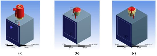 Loading conditions, constraint conditions and contacts, (a) universal prosthesis, (b) locator prosthesis, (c) equator prosthesis.