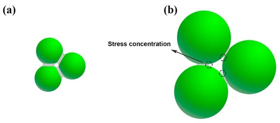 Schematic illustration of the sintering neck in porous L-SiC ceramics from (a) small particles and (b) large particles.