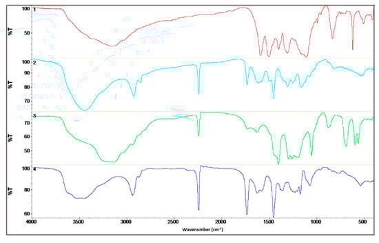 The higher degree of crystallinity, in the case of fibers, was associated primarily with a larger ordering of polymer chains along the fiber axis [29]. This parameter depended on the type and degree of interactions between macromolecules.