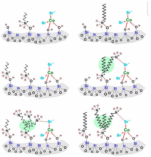 - Vrålstad, T.; Øye, G.; Rønning, M.; Glomm, W.R.; Stöcker, M.; Sjöblom, J. Interfacial chemistry of cobalt(II) during sol-gel synthesis of cobalt-containing mesoporous materials. Microporous Mesoporous Mater. 2005, 80, 291–300. [Google Scholar] [CrossRef]