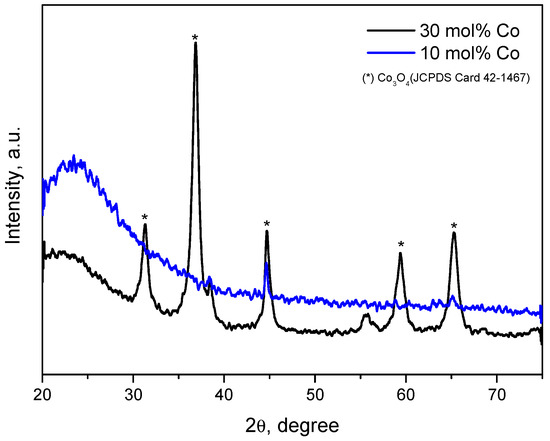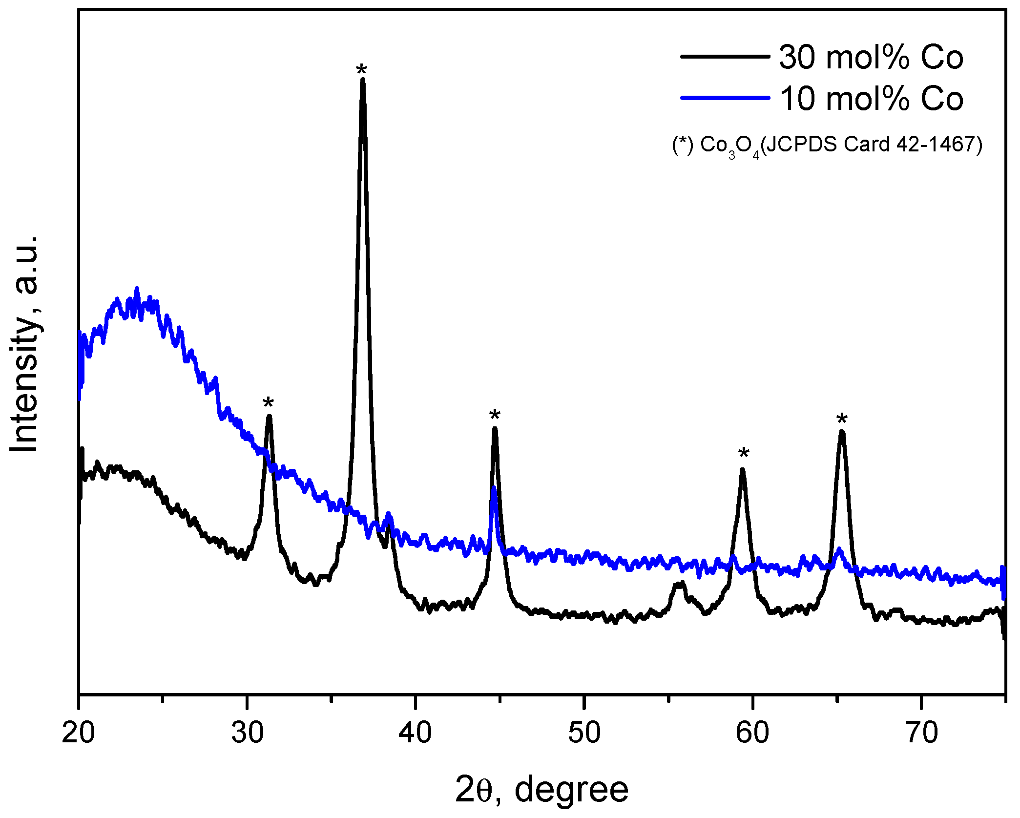 - Esposito, S.; Turco, M.; Ramis, G.; Bagnasco, G.; Pernice, P.; Pagliuca, C.; Bevilacqua, M.; Aronne, A. Cobalt–silicon mixed oxide nanocomposites by modified sol-gel method. J. Solid State Chem. 2007, 180, 3341–3350. [Google Scholar] [CrossRef]