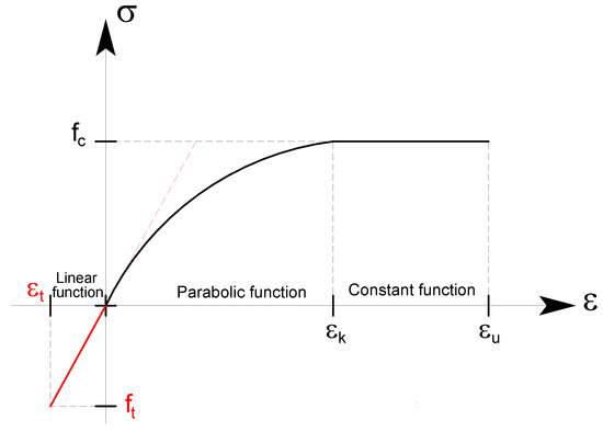 For the present work, different stress–strain relationships in compression and tension have been used. In compression, the model suggested by the Eurocode, EC6, was used, [15] where the post-peak softening (Figure 1) is neglected, idealizing the behavior after peak as perfectly plastic.