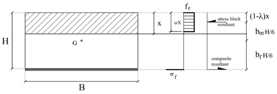 The normalization allows one to provide generalizable results of whatever are the geometric and mechanical parameters, and therefore the outcomes are applicable to any masonry structural context. The proposed formulation is partly adapted from Reinforced Concrete (RC) cross sections. The main difference here is that mechanical fiber reinforcement ratio is usually lower and the stress–strain relationship is usually multilinear depending on the stress–strain relationship of composite with usually different hardening ratios, without any contribution in compression. Given a generic cross section, the following normalized parameters are introduced:
