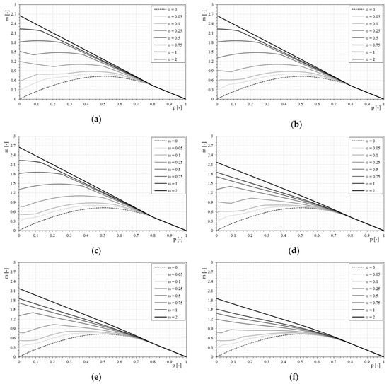 Sensitivity analysis was carried out considering appropriate values for the normalized stress–strain relationships of masonry and composite systems. The obtained results are dimensionless, hence, without regard to the geometrical and mechanical parameters of the cross section and of the composite system. The main objective was to analyze the mechanical performance at the variation of the applied mechanical percentages of strengthening, and how, with that strengthening amount, the cross section’s behavior changes according to the stress–strain behavior of the composite.