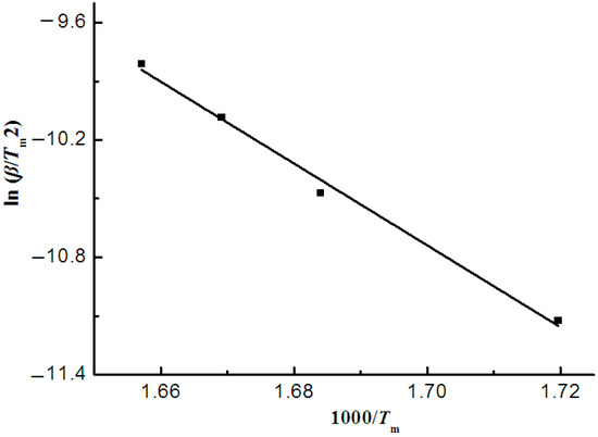 Y[ln(β/Tm2)] = {ln(AR/E) + ln[n (1 − αm)]n − 1} − Ea/R × X(1/Tm),