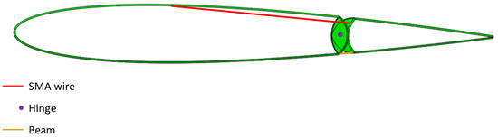 Figure 8. Trailing edge actuation, details of the SMA, hinge, and beam locations.