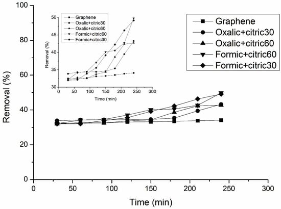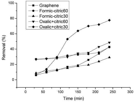 - Akhavan, O. The effect of heat treatment on formation of graphene thin films from graphene oxide nanosheets. Carbon 2010, 48, 509–519. [Google Scholar] [CrossRef]
