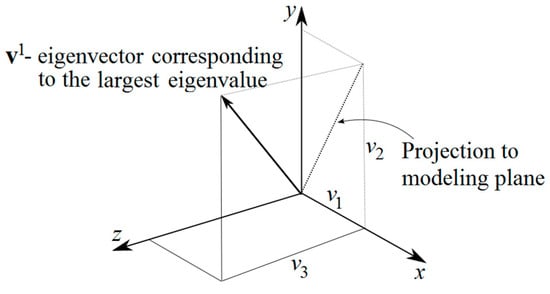 By performing the eigenvalue analysis of , a set of three eigenvectors and corresponding eigenvalues is obtained. For an arbitrary case, when fibers from the group are not all parallel, all the three eigenvalues are different from zero, while their summation is equal to one. The magnitude of each eigenvalue gives the statistical proportion of the fibers from the analyzed group, aligned along the corresponding eigenvector. Thus, by averaging the orientation of the analyzed fiber set, the smallest error is introduced if the representative direction is taken to be the eigenvector corresponding to the largest eigenvalue. This conclusion stems directly from proper orthogonal decomposition (POD) theory [28,29]. Within POD, it is demonstrated that when representing a set of vectors with one component approximation, the error of approximation is minimized if they are projected to the direction of the eigenvector corresponding to the largest eigenvalue of matrix D: