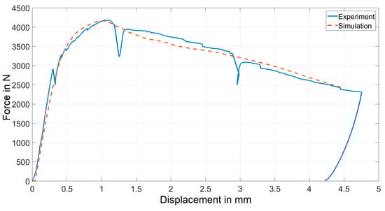 Comparison of experimental and simulated force-displacement curves for the second experiment.