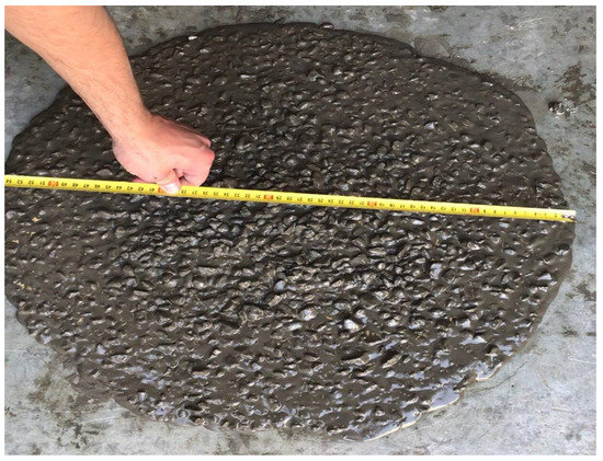 A slump test was conducted on the control mix and the heavyweight geopolymer samples to show the effect of the heavyweight aggregate on the flow of the concrete. The slump flow test was conducted using an Abrams cone in accordance with AS-1012.3.5 [58].