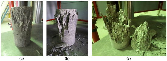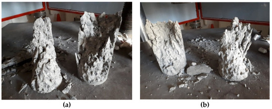 (a,b) Vertical shear failure of samples subjected to compression testing.