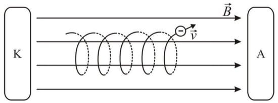 Figure 8, the shape of the Maxwellian spectrum does not depend on the presence of the magnetic field in the inter-electrode gap. Thus, Equation (1) allows for the determination of the ionization coefficient. This means that the magnetic field has a negligible influence on the ionization (avalanche) process, but does affect the value of the breakdown voltage because the superposition of translational and rotational motion of the initial electron leads to an increase of its path length i.e., to an apparent increase in the inter-electrode distance (