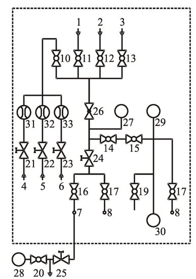 Figure 3 shows a gas circuit for adjusting the pressure value in the chamber. The pressure adjustment procedure was performed in the following steps: 1) vacuuming the chamber to a pressure of 1 Pa; 2) gas injection to a pressure of 10
