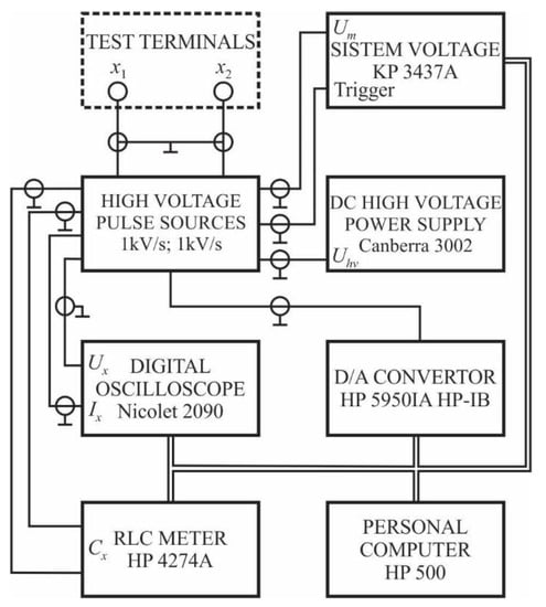 DC voltage. For the measurement of the impulse voltage, a compensated capacitive voltage divider and a 500 MHz digital oscilloscope were used. The process of voltage sources control and the acquisition of the measured values were completely automated. Following the electrode configuration of the chamber, the gas chamber was plugged into a circuit. For one pressure value, after conditioning the electrode system, the following measurements were performed: 1) 50 values of the