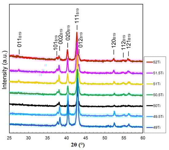- Ramaiah, K.V.; Saikrishna, C.N.; Gouthama; Bhaumik, S.K. Microstructure and transformation behaviour of Ni75-XTiXPd25 high temperature shape memory alloys. J. Alloys Compd. 2013, 554, 319–326. [Google Scholar] [CrossRef]