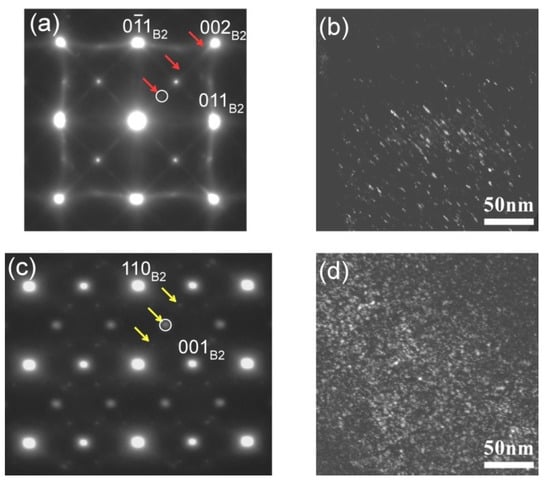 - Delville, R.; Schryvers, D. Transmission electron microscopy study of combined precipitation of Ti2Ni(Pd) and Ti2Pd(Ni) in a Ti50Ni30Pd20 alloy. Intermetallics 2010, 18, 2353–2360. [Google Scholar] [CrossRef]