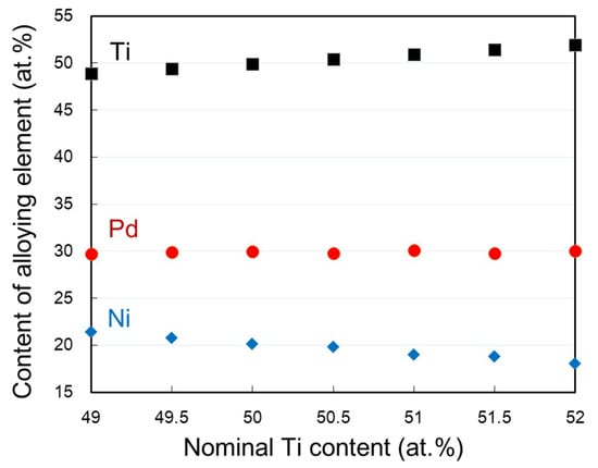 Hattori, Y.; Taguchi, T.; Kim, H.Y.; Miyazaki, S. Effect of Stoichiometry on Shape Memory Properties and Functional Stability of Ti–Ni–Pd Alloys. Materials 2019, 12, 798. https://doi.org/10.3390/ma12050798