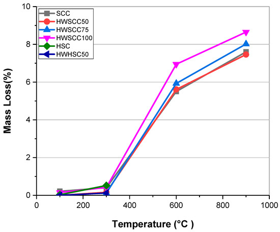 7], the effect of the addition of nanosilica on the mechanical performance of HWC containing quartz, barite, and magnetite aggregates exposed to elevated temperatures were explored. Of these, magnetite-based HWC showed the highest thermal stability, and hence it was concluded that the type of the heavyweight aggregate would determine the thermal resistance of the HWC. Moreover, they revealed that the addition of nanosilica up to 3% would enhance the thermal resistance of the cement mortar containing heavyweight aggregates, especially at temperatures lower than 200 °C [