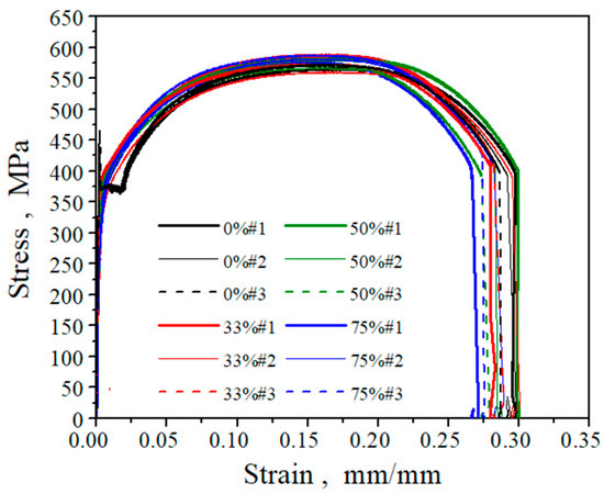 3.1. Changes to the Mechanical Properties of Materials under Uniaxial Tension after Pre-Fatigue Testing