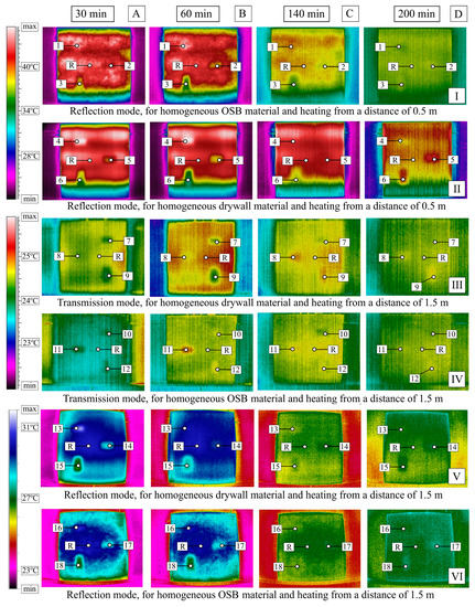 | Defect | OSB, Heating from Distance 0.5 m | OSB, Heating from Distance 1.5 m | GK, Heating from Distance 0.5 m | GK, Heating from Distance 1.5 m |