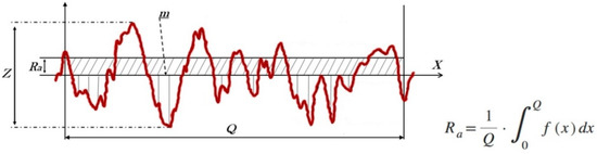A roughness value can either be calculated on a profile (line) or on a surface (area). Ra is the parameter of the profile roughness parameter, which is the most employed, and Sa is a measure of area roughness. Ra means the value obtained by the following formula and expressed in micrometer (µm) when sampling only the reference length from the roughness curve in the direction of the mean line, taking x-axis in the direction of mean line and y-axis in the direction of longitudinal magnification of this sampled part and the roughness curve is expressed by y = f(x) (Figure 2):