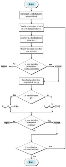 where the is accepted when it has better result. After the learner stage, all the better results are saved and afterward used as inputs to the next iteration of teacher phase. The flow chart of TLBO is demonstrated in Figure 1.