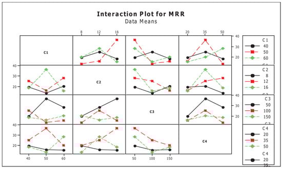 Interaction plot of the material removal rate (MRR) [157].