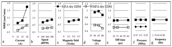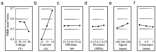 (a–f) Main effects of the input parameters associated with the MRR [174].