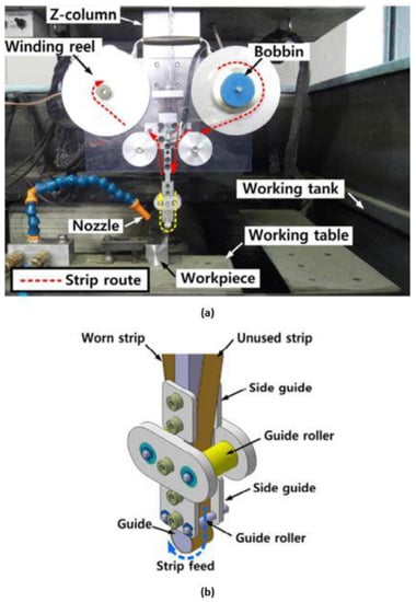 (a) Strip-EDM system; and (b) electrode guide [159].