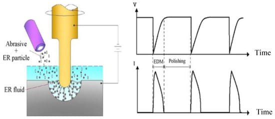 - Cheong, H.G.; Kim, Y.S.; Chu, C.N. Effect of reverse current on tool wear in micro-electrical discharge milling. Precis. Eng. 2019, 55, 484–490. [Google Scholar] [CrossRef]