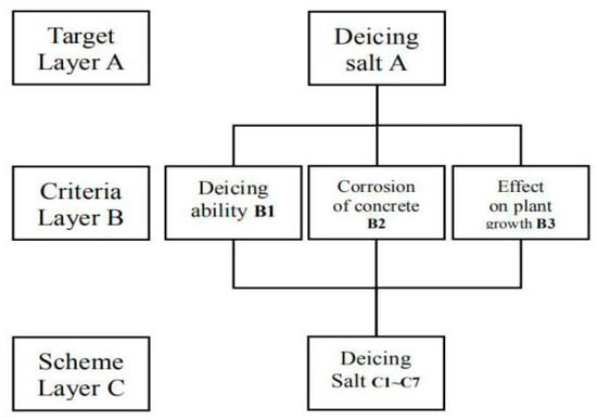 Hierarchical analysis structure of preferred choice of de-icing salt.