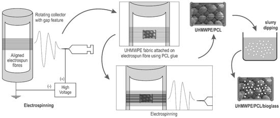 Fabrication process of ultra-high molecular weight polyethylene (UHMWPE)/ polycaprolactone (PCL)/Bioglass®.