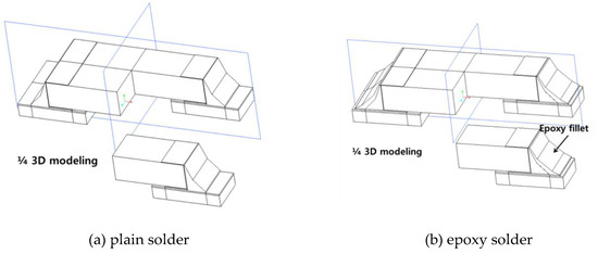 1/4 3D model of plain and epoxy solder specimens. (a) plain solder modeling; (b) epoxy solder joint modeling.