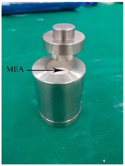 The sample mold to measure the expansion stress of the MEA was made of CrWMn steel with hardness of HRC61 and elastic modulus of 224 GPa (Figure 2).