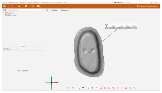 The prepared teeth were scanned with a light scanner (Ceramill map400, Amann Girrbach, Koblach, Austria) and a STL (Standard Triangulation Language) file was created (Ceramill Mind, Amann Girrbach, Koblach, Austria) and the bonding surfaces were calculated (GOM Inspect, GOM, Braunschweig, Germany) (Figure 5).