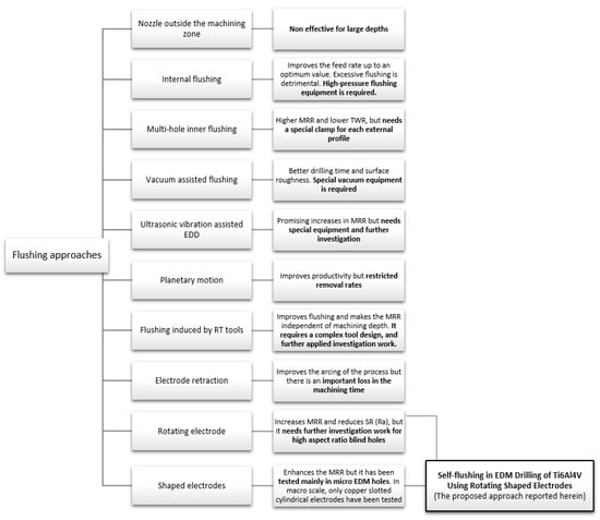 Figure 1 schematically summarizes the state-of-the-art flushing techniques in the EDM process and locates the proposed approach reported herein within the context of the existing literature.
