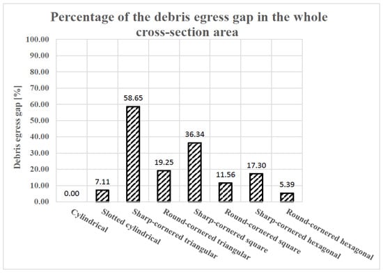 The percentage of debris egress gaps with respect to the whole cross-sectional areas.