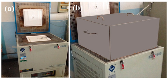 The upper open-type test electric furnace. (a) Upper opening heating furnace and (b) insulated enclosure.