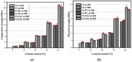 - The addition of cement can significantly improve the compressive and flexural strength of blended mortars. For CS-PC blended mortars, the content of Portland cement should be more than 20% so than to enhance mechanical properties. Compared with Portland cement, sulphoaluminate cement contributes more to the strength, the compressive and flexural strength of CS-SAC blended mortars are almost 2 times stronger than that of CS-PC blended mortars.