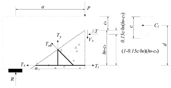 Then, the resultant force C and the distance z can be determined from Equations (12)–(14). In addition, as Figure 3 shows, the equilibrium of horizontal forces on the free-body diagram above critical diagonal crack is determined by