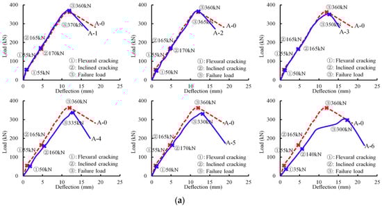 Load–deflection curves at mid-span: (a) Group A; and (b) Group B.