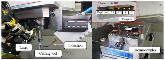 The thermal measurement experiments to determine the temperature distribution of the laser, induction, and laser-induction heat sources was performed using thermocouples. The preheating temperature set for the device was checked to ensure it was properly applied to the workpiece, and the temperature of the workpiece was checked to ensure it was maintained over time after the heat source passed.
