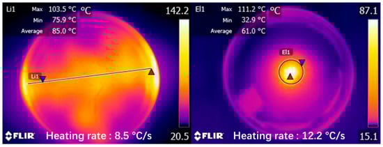 Figure 6. Infrared imaging of samples during induction heating.