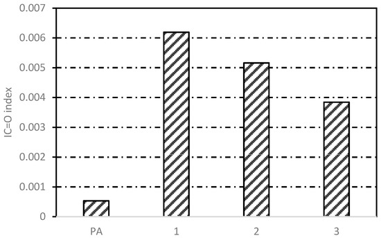 I C = O = Area   of   carbonyel   band   centered   around   1700   cm 1   Area   of   spectral   bands   between   2000   and   600   cm 1