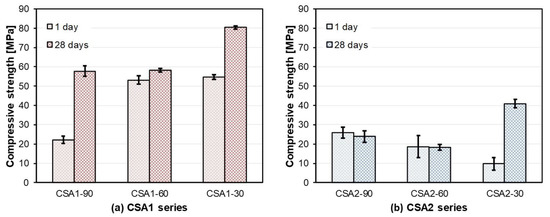 The following are available online at https://www.mdpi.com/1996-1944/12/7/1072/s1, Table S1: Averaged compressive strength and its standard deviation, Figure S1: QXRD results for (a) CSA1-30, (b) CSA2-30, (c) CSA1-60, (d) CSA2-60, (e) CSA1-90, and (f) CSA2-90.