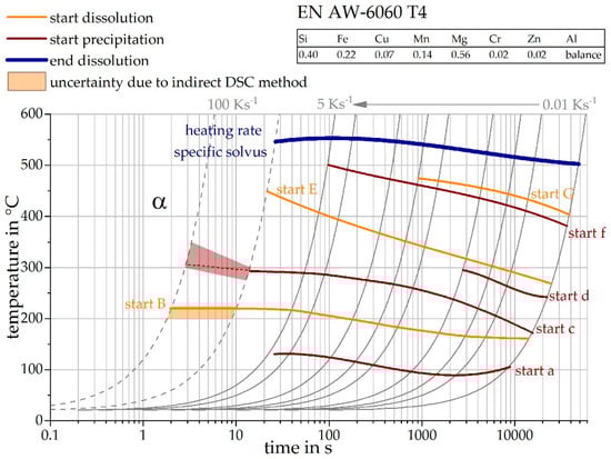Continuous heating dissolution diagram of EN AW-6060 T4, including the findings of the indirect measurements.