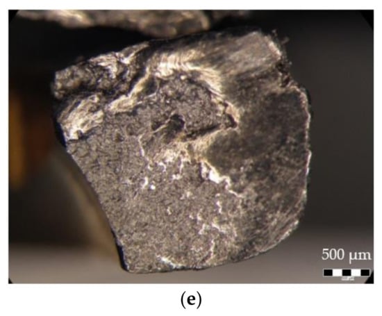 On the fracture surface shown in Figure 15e, galling can be observed and a significant proportion of the fracture area reveals a crystalline aspect, suggesting a brittle fracture.